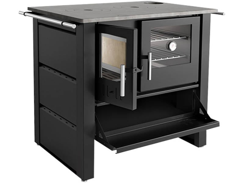 Un modelo exclusivo que combina diseño, confort y eficiencia, pensado para quienes buscan elevar la experiencia de cocinar y calefaccionar con leña.