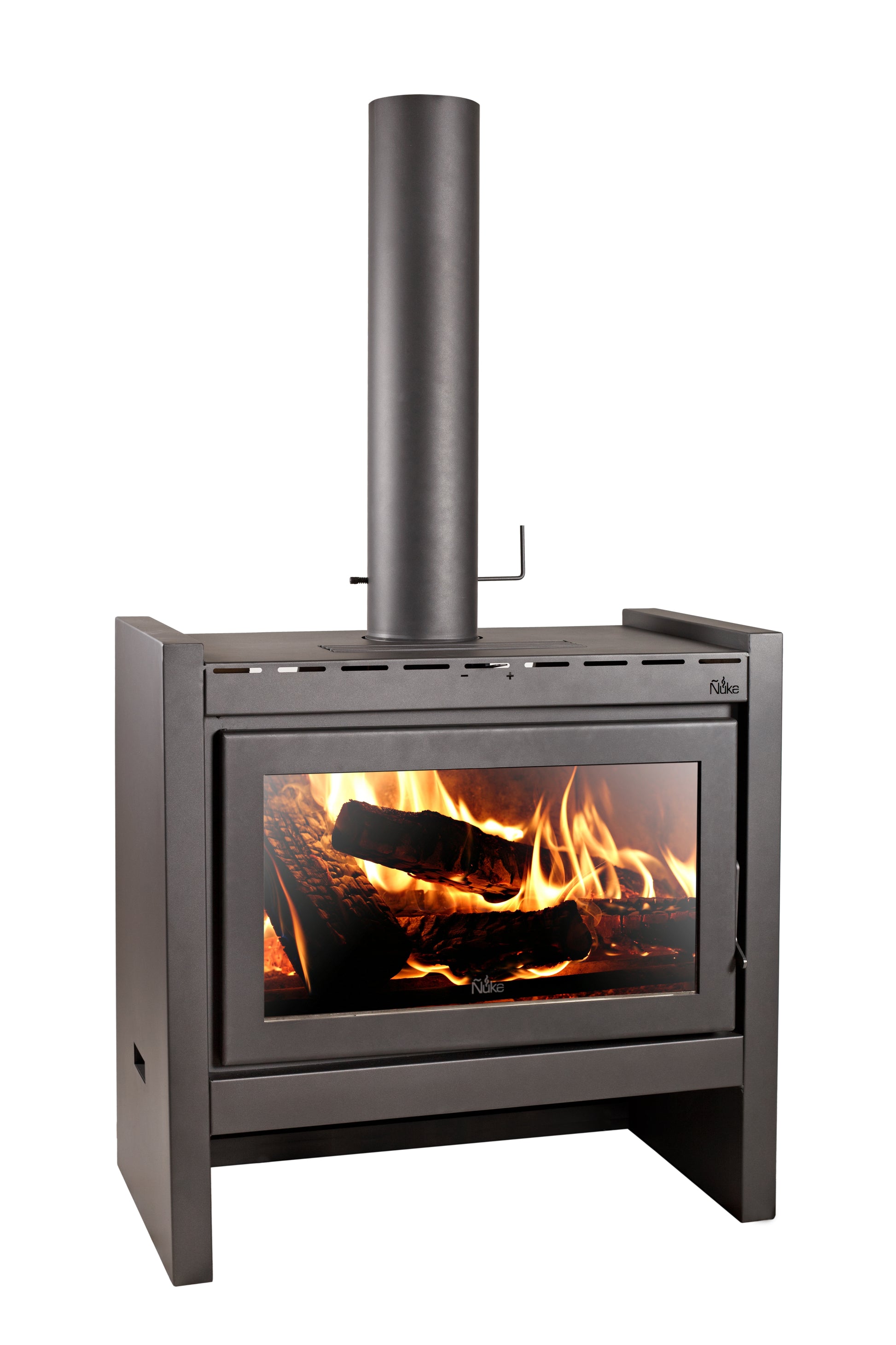 La estufa a leña más grande de Ñuke de 25.000 kcal/hr. Para superficies de 120 a 200 m2, su sistema de doble combustión logra un alto rendimiento de biomasa.