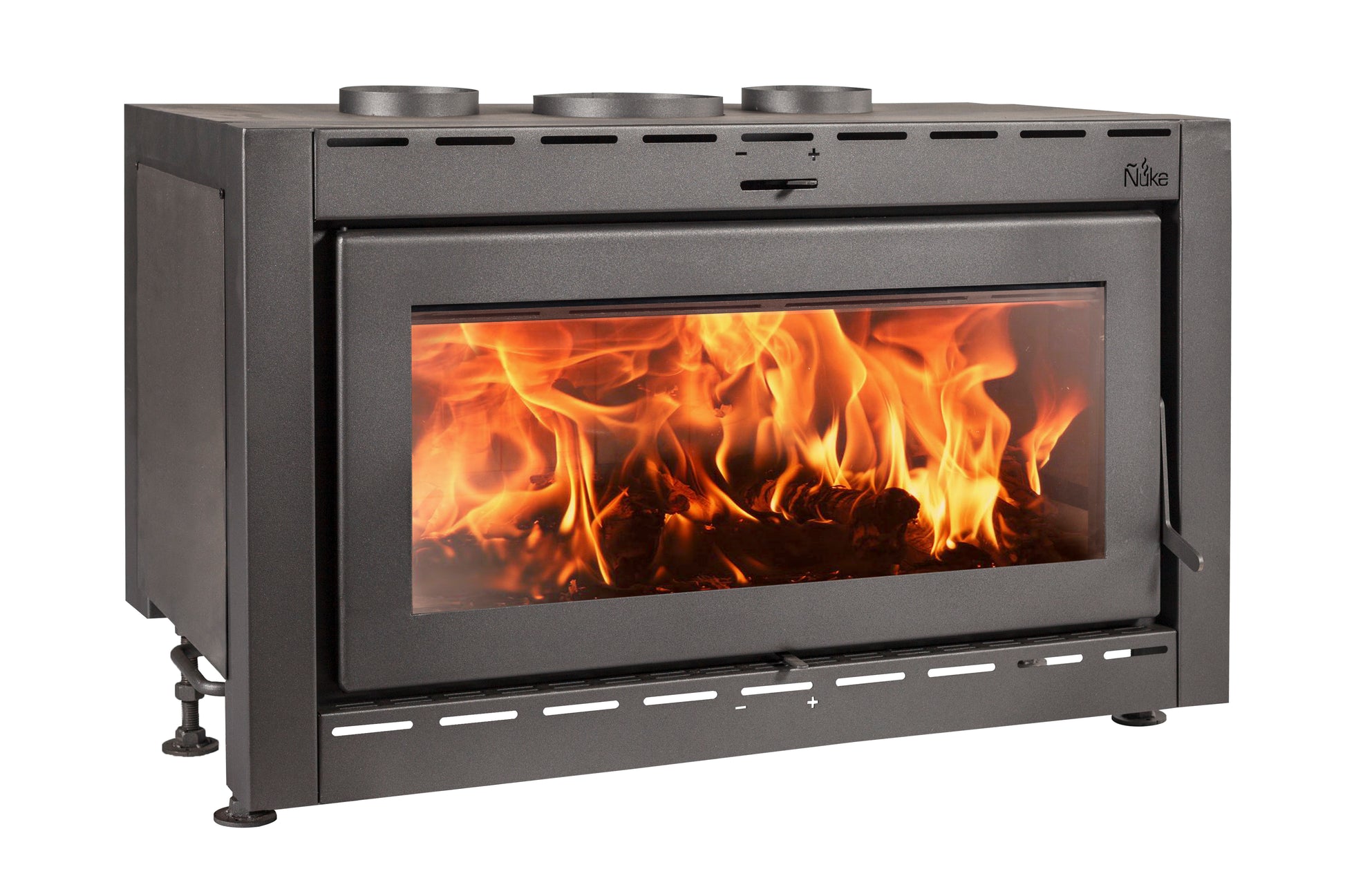 Su menor altura permite ajustarse mejor a hogares existentes. Calefactor a leña para derivación de aire caliente