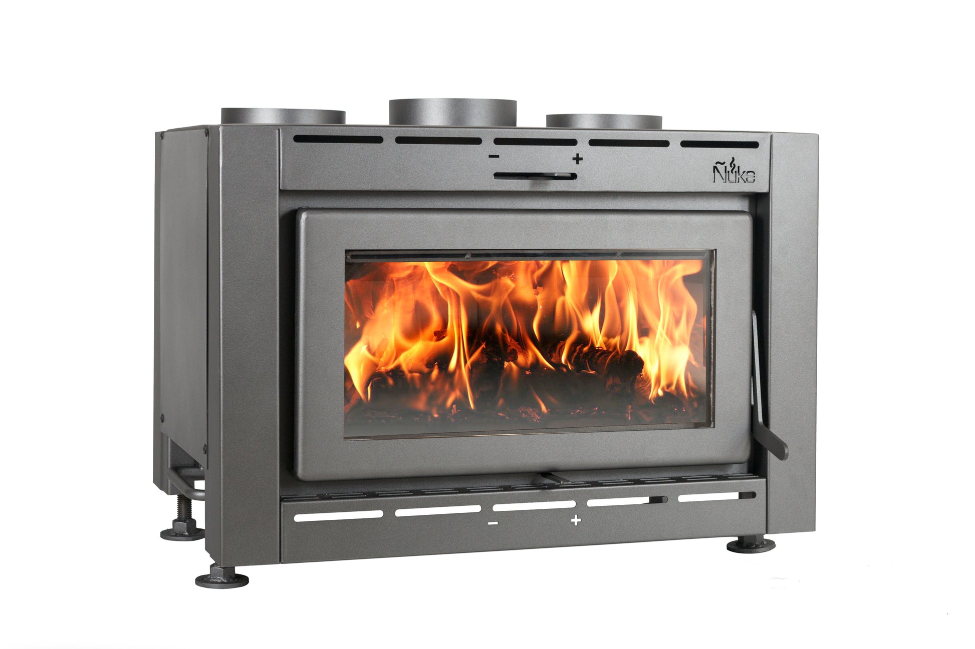 Calefactor a leña Insertable. Su original diseño permite insertarlo en hogares preexistentes, ubicados en ambientes de menor superficie.