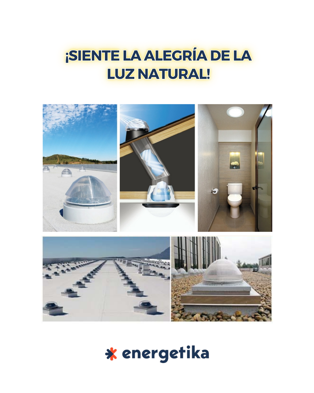 Transforma tus ambientes con el LumiSol Tube de Energetika, un innovador Sistema de Iluminación Natural Tubular que capta, transmite y distribuye la luz solar para llenar de claridad tus espacios interiores, incluso aquellos de gran volumen o con techos altos.